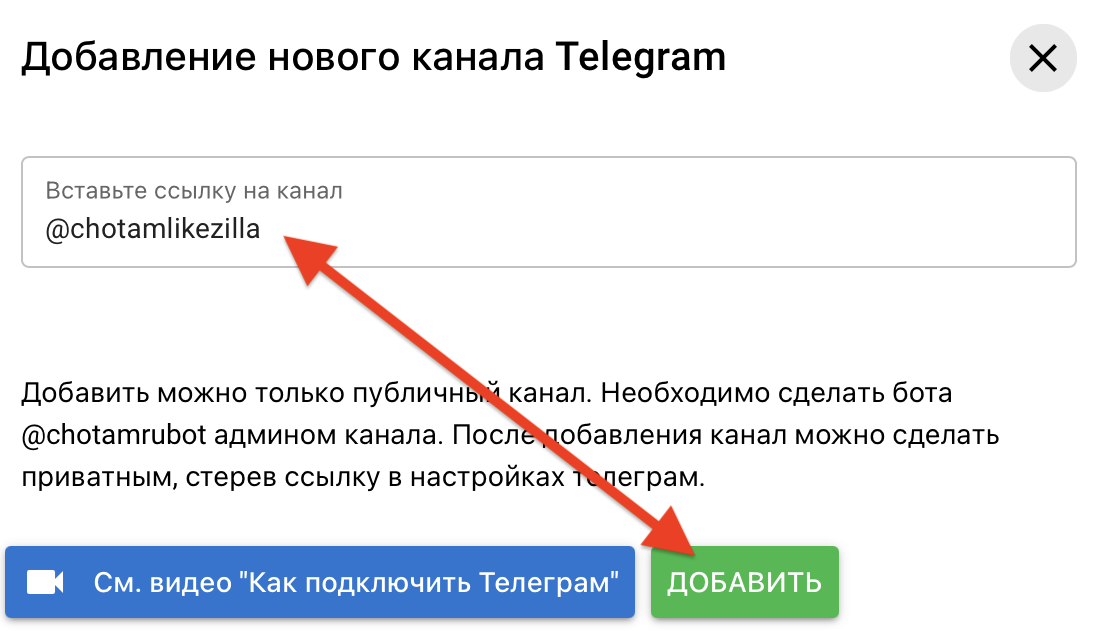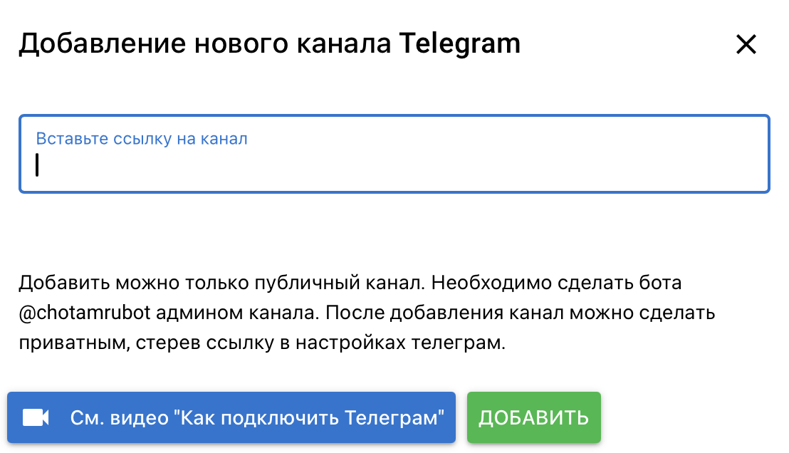 У вас должен быть уже создан Телеграм-канал, в котором вы - админ. Канал на момент подключения должен быть открытым (публичным). После подключения вы можете его сделать закрытым (приватным), чтобы другие люди не могли читать оповещения - это рекомендуется делать всегда.
