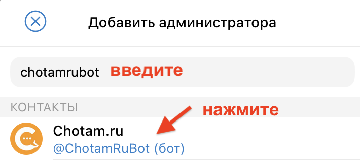 Появится окно поиска людей и ботов в телеграме. В поиске введите chotamrubot. Наш бот появится ниже - нажмите на него.